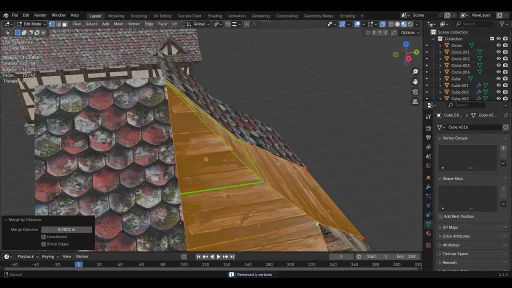 While building corners for a modular house kit, I used loop cuts and merging—but cleaning up the merged pieces was hard while trying to preserve the geometry.